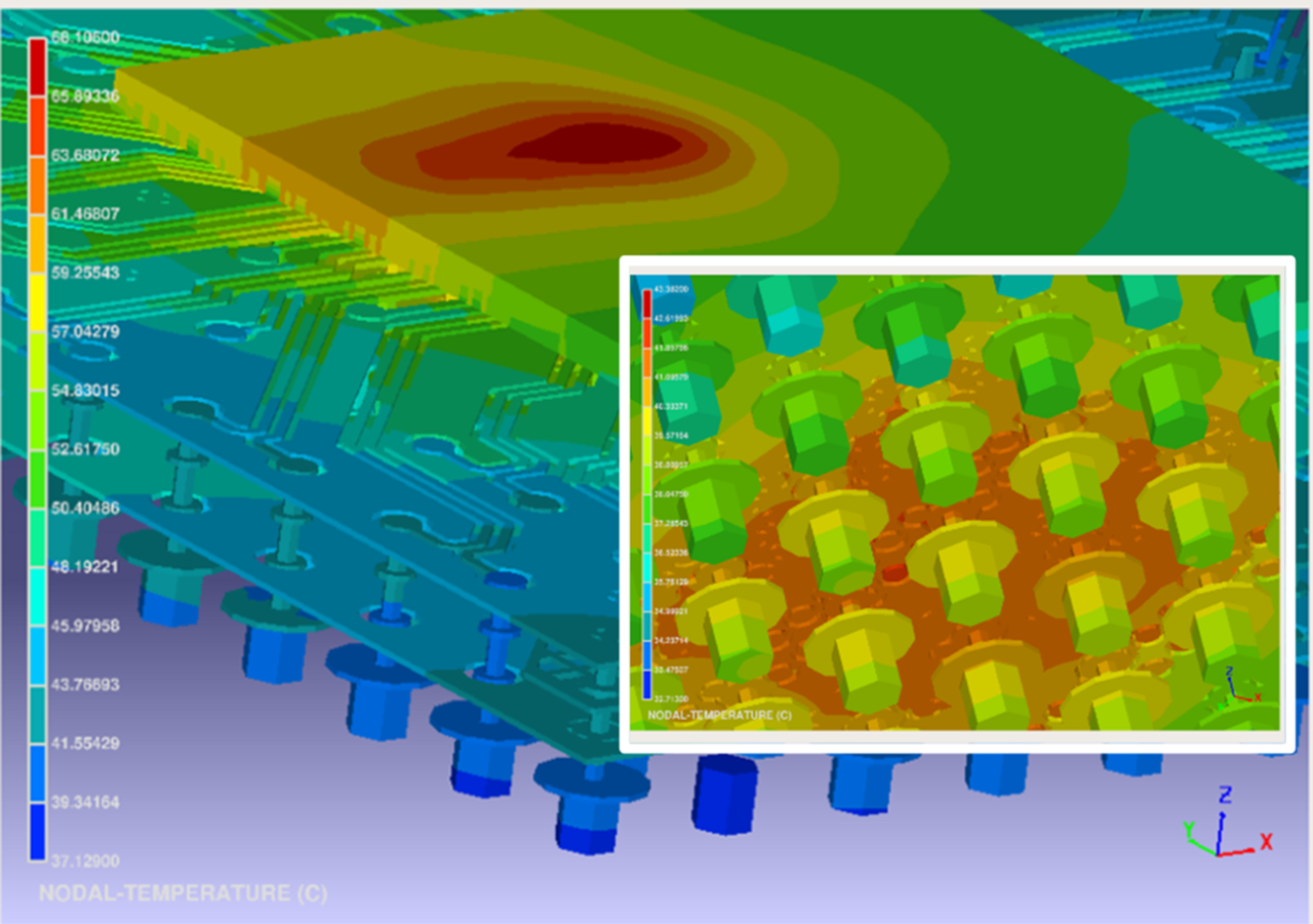 내부 부품에서 발생하는 열 또는 외부 환경 열에 의해 제품 내부에서 발생하는 열 전달, 온도 분포, 열 변형 및 열 응력을 정량적으로 검토할 수 있습니다.